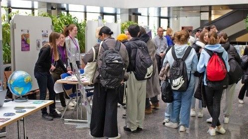 Im Rahmen der KV Reform fand am KV Zürich im November 2023 zum ersten Mal der Marktplatz Mobilität statt. Während drei Tagen standen Anbieter von Mobilitätsprojekten den Lernenden Red und Antwort und zeigten ihnen die grosse Vielfalt an Möglichkeiten auf, einen selbstorganisierten Fremdsprachenaufenthalt durchzuführen.